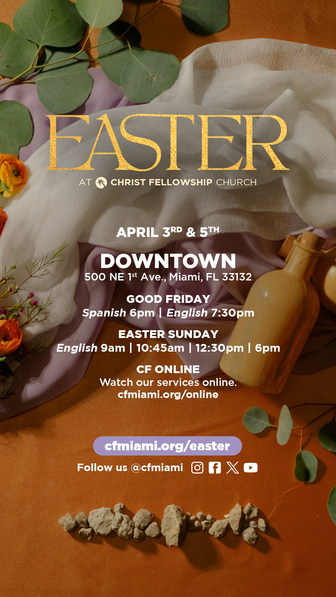 Celebrate the hope and love we find in Jesus! We will offer two unique experiences for the entire family: Good Friday and Easter Sunday, available in English and Spanish—onsite and online.